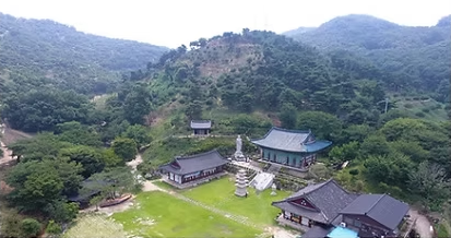 구절초 언덕과 온갖 꽃으로 둘러 싸인 산사의 정취. 금강을 거슬러 올라가는 장군산의 기운찬 명당.